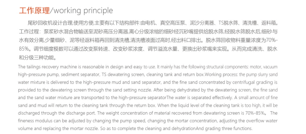 簡介—— TSJ系列尾砂回收機(jī)是我公司吸收國外先進(jìn)技術(shù)并結(jié)合我國實際情況而設(shè)計的具有國際先進(jìn)水平的細(xì)沙回收機(jī)。廣泛用于泥漿凈化、水