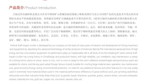 立軸式?jīng)_擊破碎機(jī)是我公司在多年研制礦山機(jī)械設(shè)備的基礎(chǔ)上吸取美國巴馬克公司同類產(chǎn)品的先進(jìn)技術(shù)開發(fā)出的具有國際先進(jìn)水平的高能低耗設(shè)備,其性能在各種礦石細(xì)破起著不可替代的作用。S系列立軸沖擊破碎機(jī)在國內(nèi)擁有悠久的設(shè)計生產(chǎn)歷史,具有可靠性高、使用、安裝、維修方便;適合破碎的物料面積大;運行、維護(hù)成本低廉,經(jīng)濟(jì)性好。節(jié)能環(huán)保,無需任何附加裝置等特點。不僅廣泛運用于極硬物料,更應(yīng)用于物料性能差異大的人工制砂,預(yù)粉磨水泥,耐火材料等行業(yè)的細(xì)碎超細(xì)碎,如花崗巖、玄武巖、石灰?guī)r、石英石、片麻巖、水泥熟料、混凝土骨料、陶瓷原料、鐵礦、金礦、銅礦、剛玉、鋁礬土和硅石等。